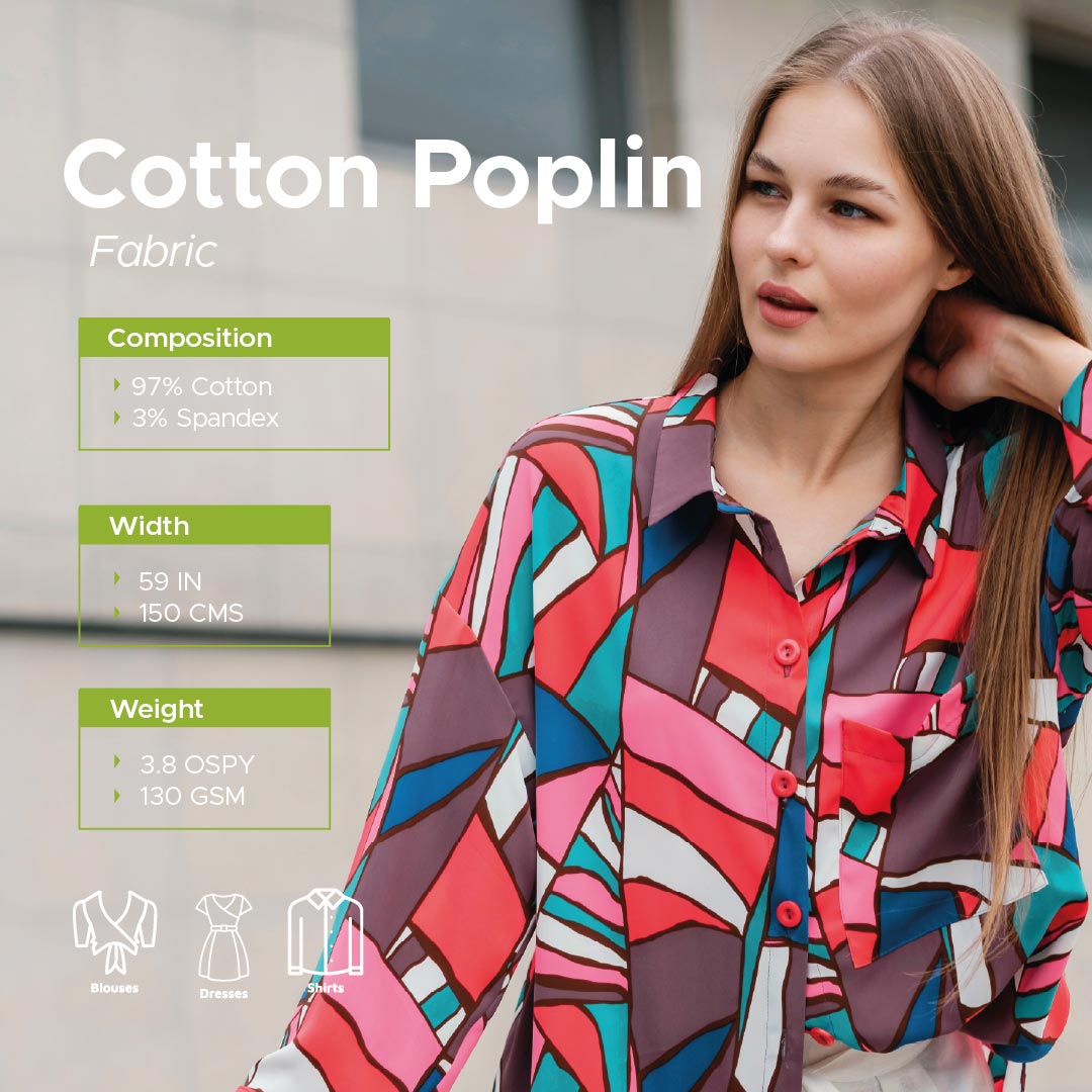 Experience exceptional softness and breathability. Our stretch poplin fabric, made from recycled cotton, offers a smooth and lightweight feel, keeping you comfortable throughout the day. Join the sustainable fashion revolution. Our fabric is crafted from recycled cotton, reducing waste and supporting a greener future for the textile industry.